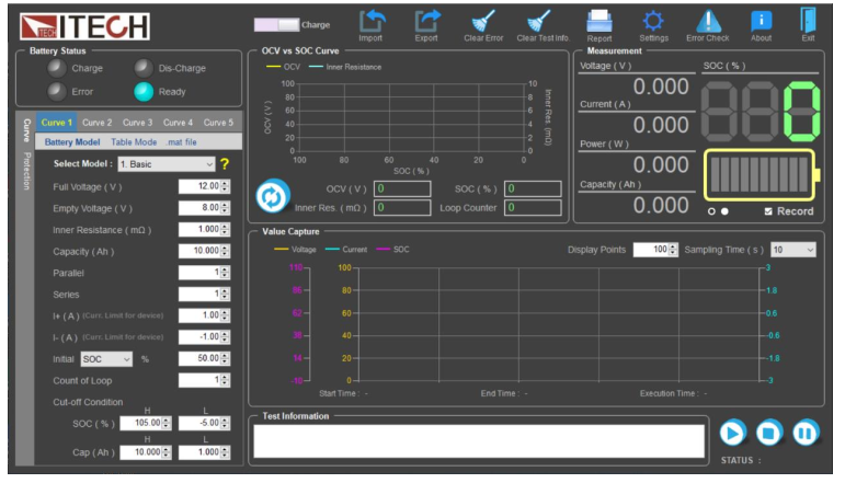 此外,為了更好地模擬動力電池的特性,IT6000C還可搭配BSS2000系列電池模擬軟件。軟件內(nèi)建有豐富的電池特性曲線庫,并提供自定義曲線等功能,為工程師解決使用真實(shí)電池測試模式下效率低、成本高及接線復(fù)雜等問題。